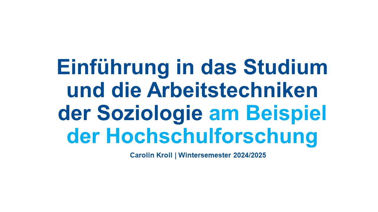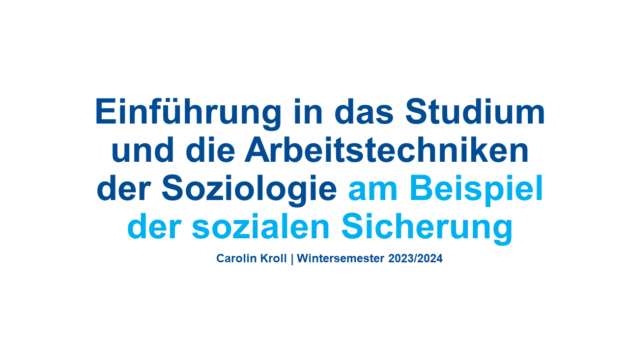 Dieses Seminar „Einführung in das Studium und die Arbeitstechniken der Soziologie" (1. Semester) richtet sich insbesondere an die Studienanfänger*innen im WS 2023/24. Erlernt und eingeübt werden das wissenschaftliche Arbeiten und das Verfassen von wissenschaftlichen Arbeiten.